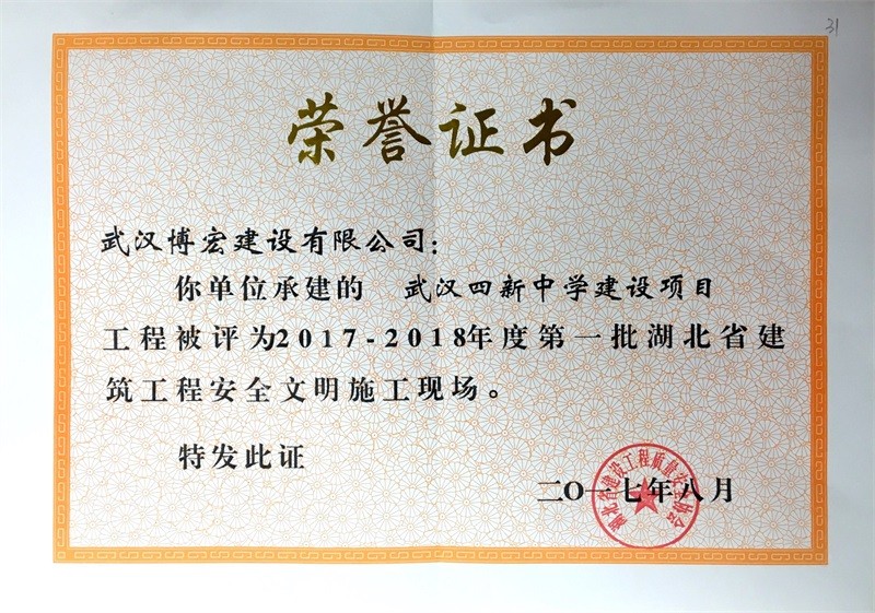 2017-2018年度第一批湖北省建筑工程安全文明施工現場 (武漢四新中學建設項目)