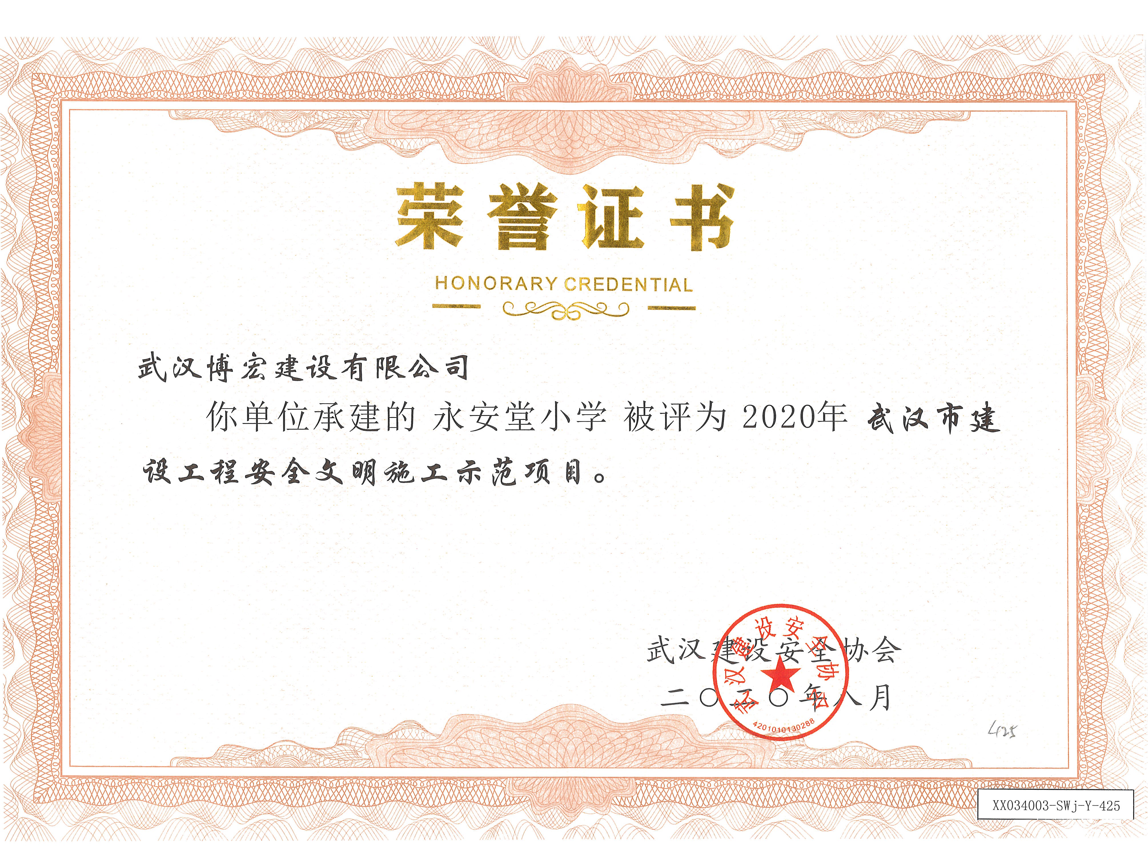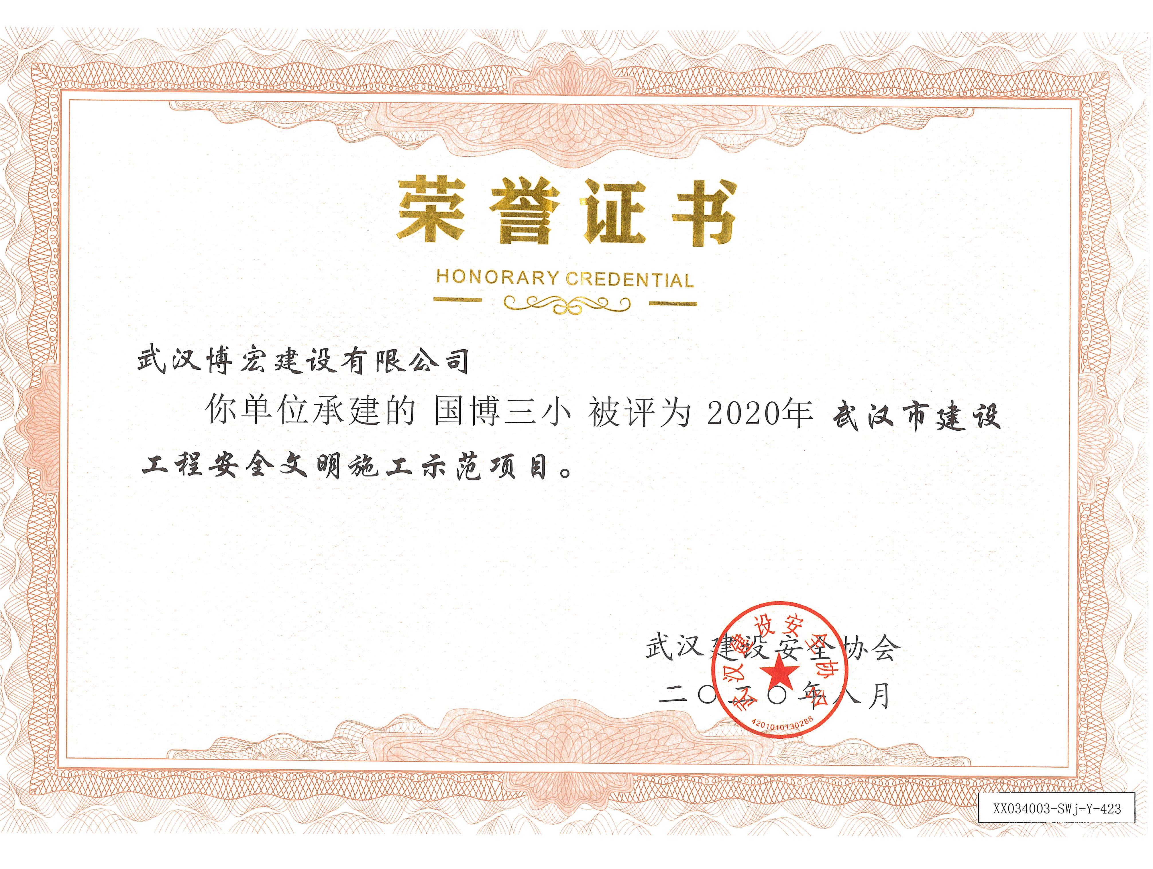 2020年武漢市建設工程安全文明施工示范項目(國博三小)