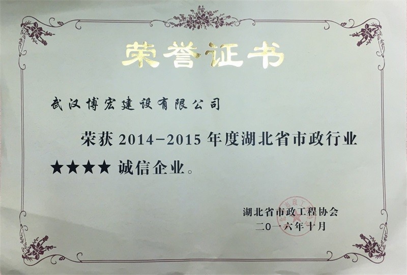 2015-2016市市政行業(yè)AAA信用等級(jí)證書