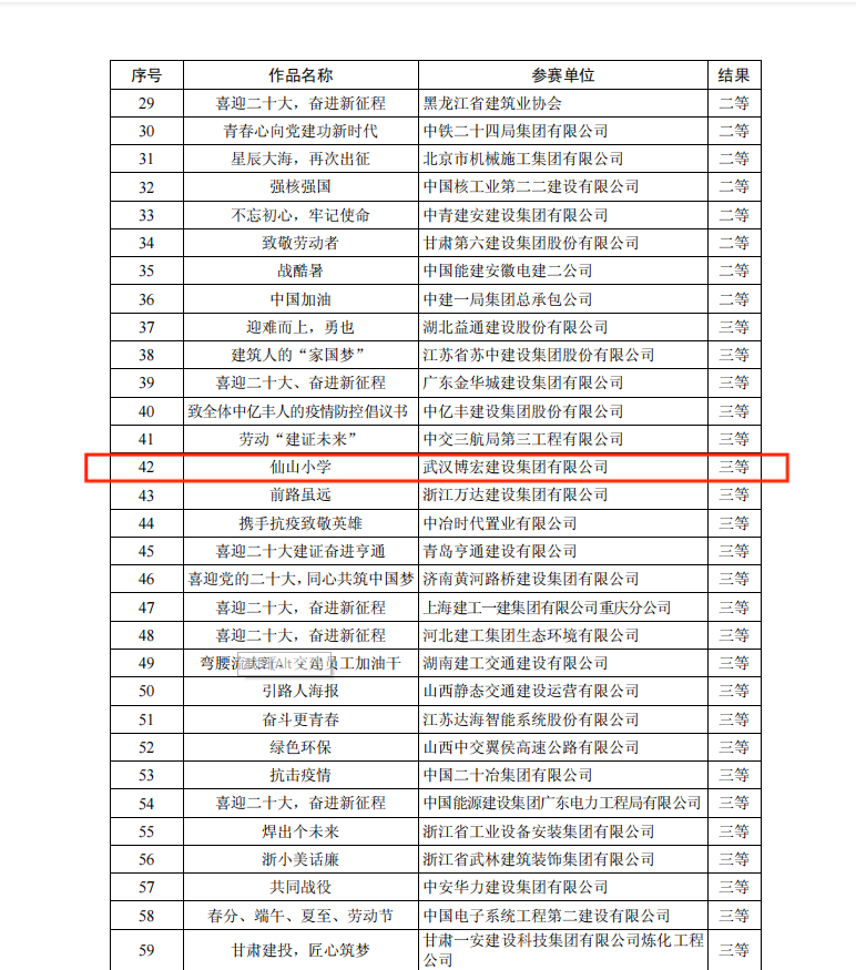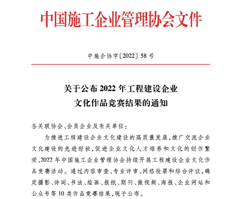 近日,中國(guó)施工企業(yè)管理協(xié)會(huì)發(fā)布“關(guān)于公布工程建設(shè)企業(yè)文化建設(shè)最佳案例和優(yōu)秀案例的通知”和“關(guān)于公布2022年工程建設(shè)企業(yè)文化作品競(jìng)賽結(jié)果的通知”,經(jīng)過內(nèi)容審查、專業(yè)評(píng)審等環(huán)節(jié),博宏建設(shè)集團(tuán)《創(chuàng)新企業(yè)文化建設(shè) 凝聚企業(yè)發(fā)展新動(dòng)能》案例獲評(píng)工程建設(shè)企業(yè)文化建設(shè)優(yōu)秀案例;仙山小學(xué)海報(bào)獲評(píng)海報(bào)作品競(jìng)賽單元三等獎(jiǎng)。
