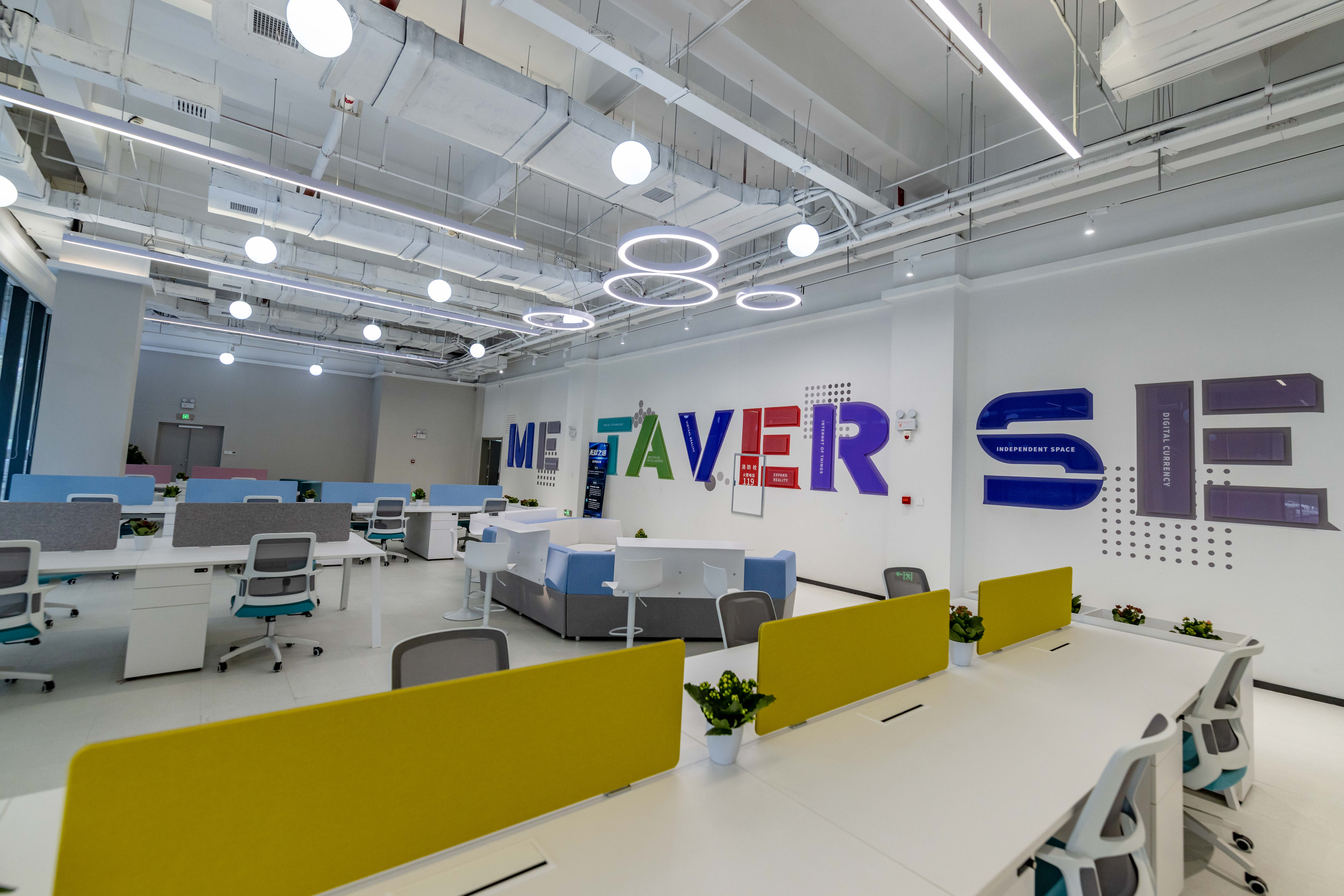 利用不同顏色不同紋理的木紋磚將辦公區(qū)域與休閑區(qū)域進(jìn)行分割。這樣各功能性分區(qū)都有固定的主要功能,也可安置各自的特色家具。整個空間采用了親和、天然性的裝飾材料,顏色的碰撞、元宇宙元素的融合,創(chuàng)造了具有未來感、幸福感的空間氛圍。