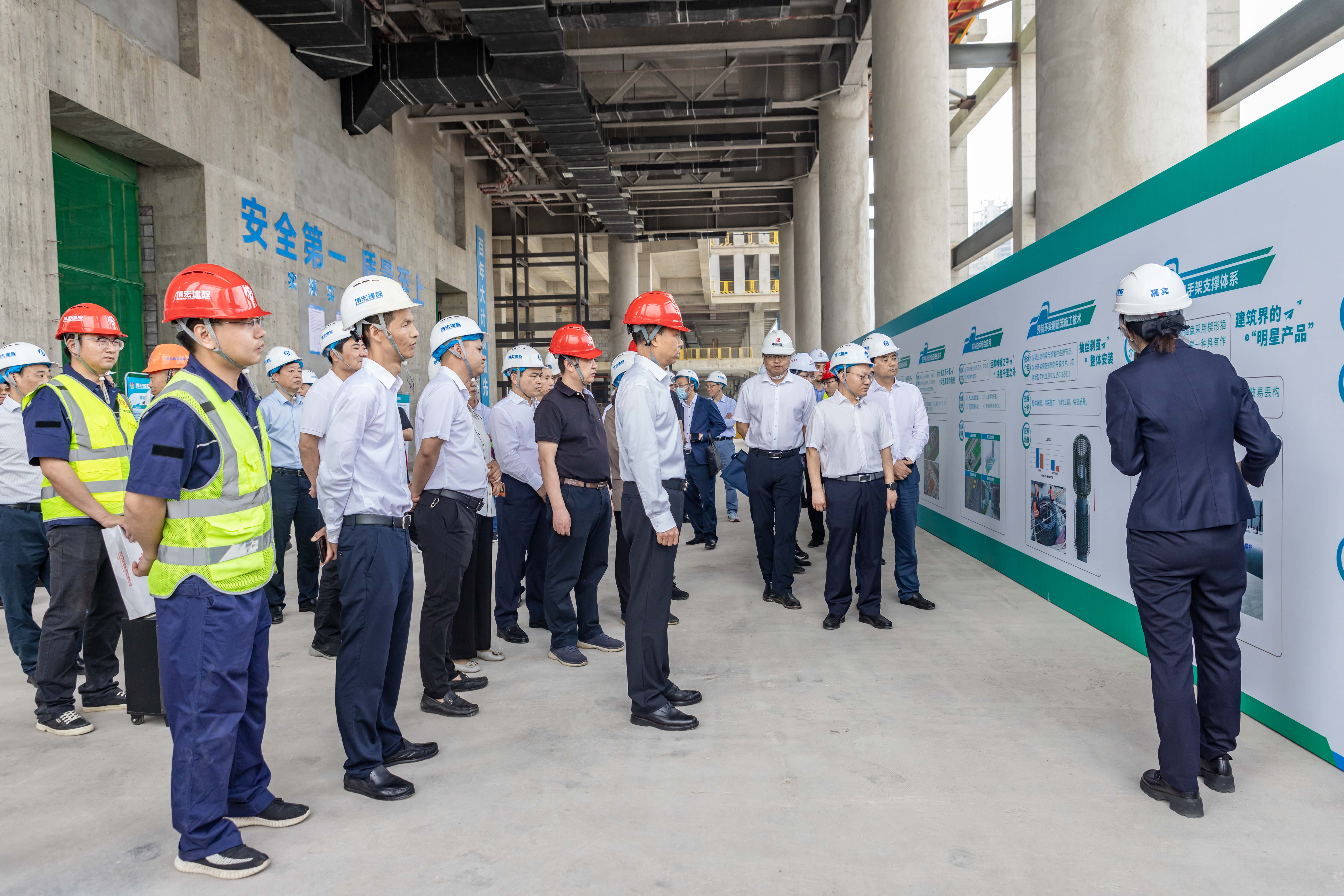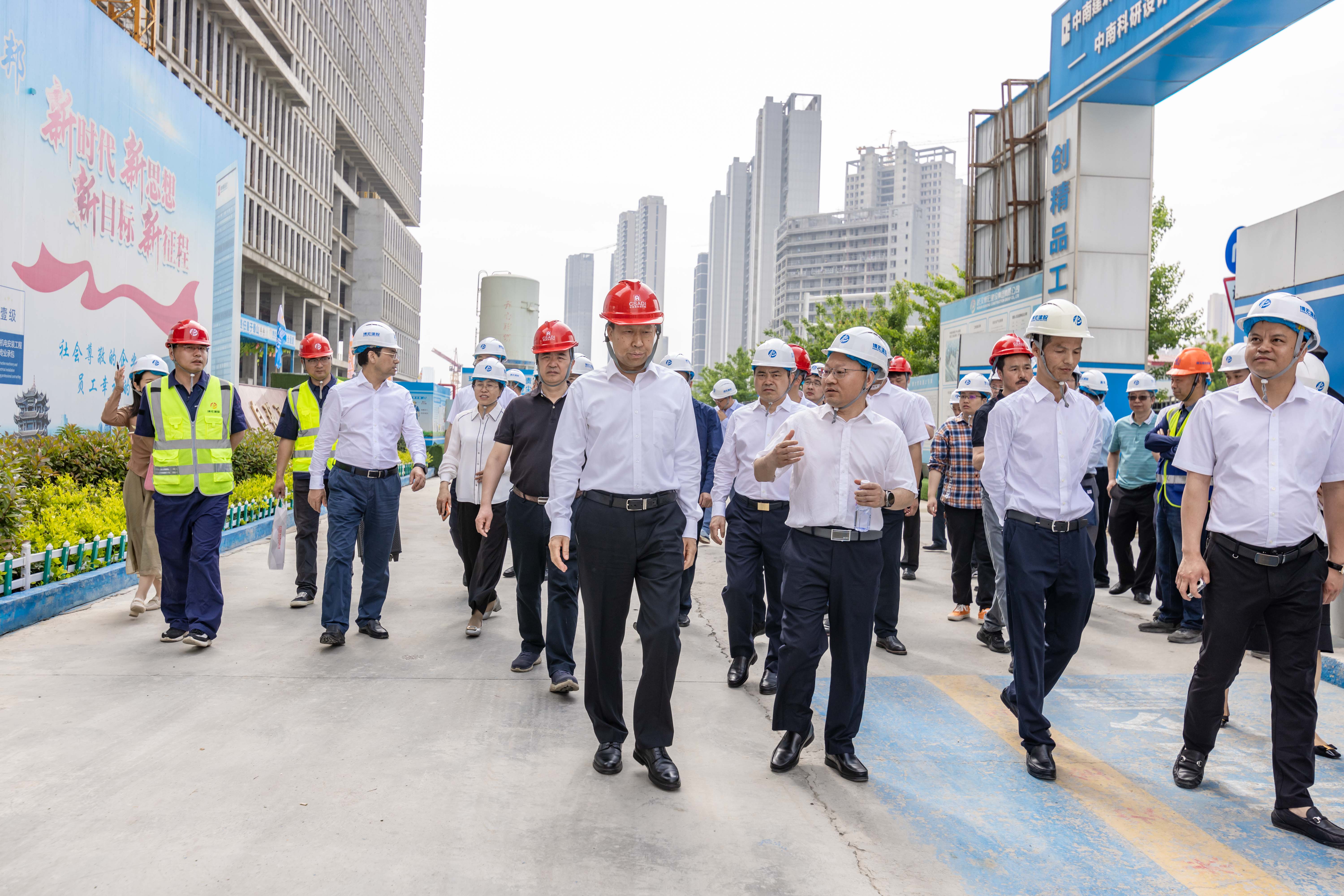 劉雪榮一行首站參觀了中南科研設計中心項目,該項目是“湖北省綠色建造智能建造品質建造科技創新融合試點項目”,在推廣綠色建造創新關鍵技術上積極探索“四新”(新技術、新工藝、新材料、新設備)技術應用,也是踐行綠色建筑理念的藍本