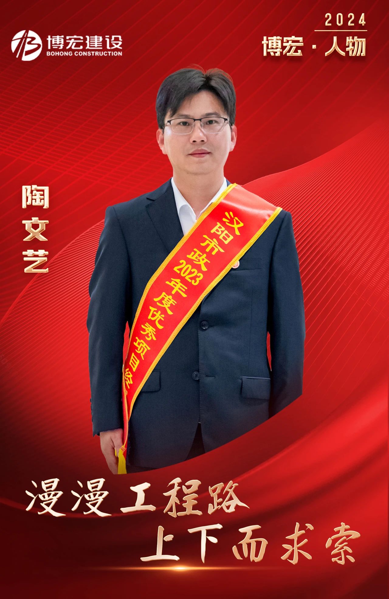 陶文藝,中共黨員,2010年入職漢陽市政博宏建設,現任九項目部項目經理。從業二十載,他先后參建了米糧山立交、鸚鵡洲長江大橋漢陽接線工程、芳草小學、墨水湖公園、黃石正信花園、黃梅菩提小鎮、襄陽清河城、荊門龍山中央商務區、宜昌天創覽江府等多個項目,一座座精品工程見證了他的奮斗和成長,也見證了他在勇敢跨越中屢攀高峰。曾獲評漢陽市政“優秀項目經理”“優秀員工”“優秀專業技術人員”,博宏建設“優秀項目經理”“十佳員工”“優秀個人”等榮譽稱號。